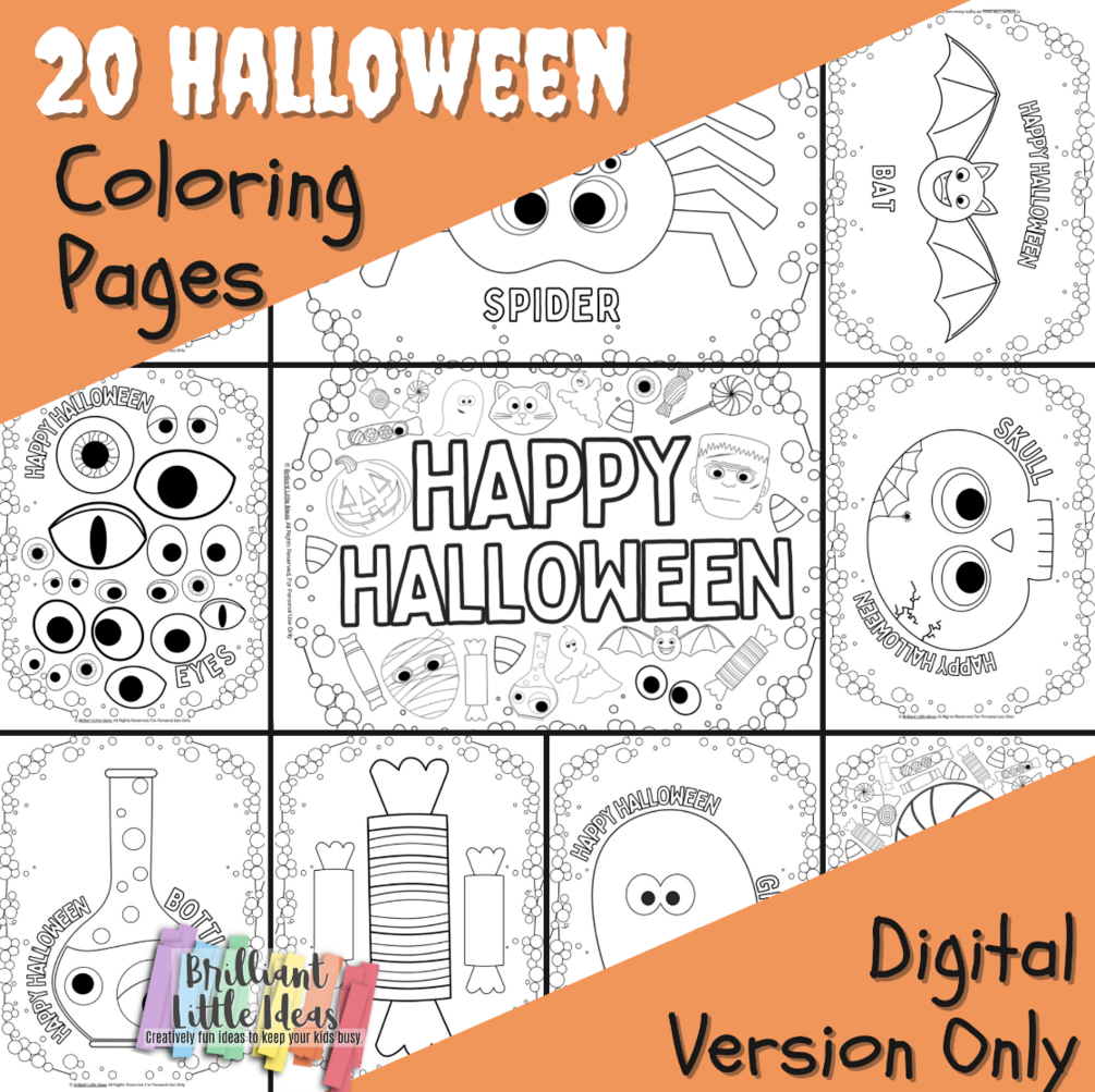 Grab your instant download of 20 Printable Halloween Coloring Pages. This spooky set of Halloween coloring pages are perfect for your kids or students. Print and let each student choose their own picture to color. You may print them as many times as you'd like! See terms of use below.